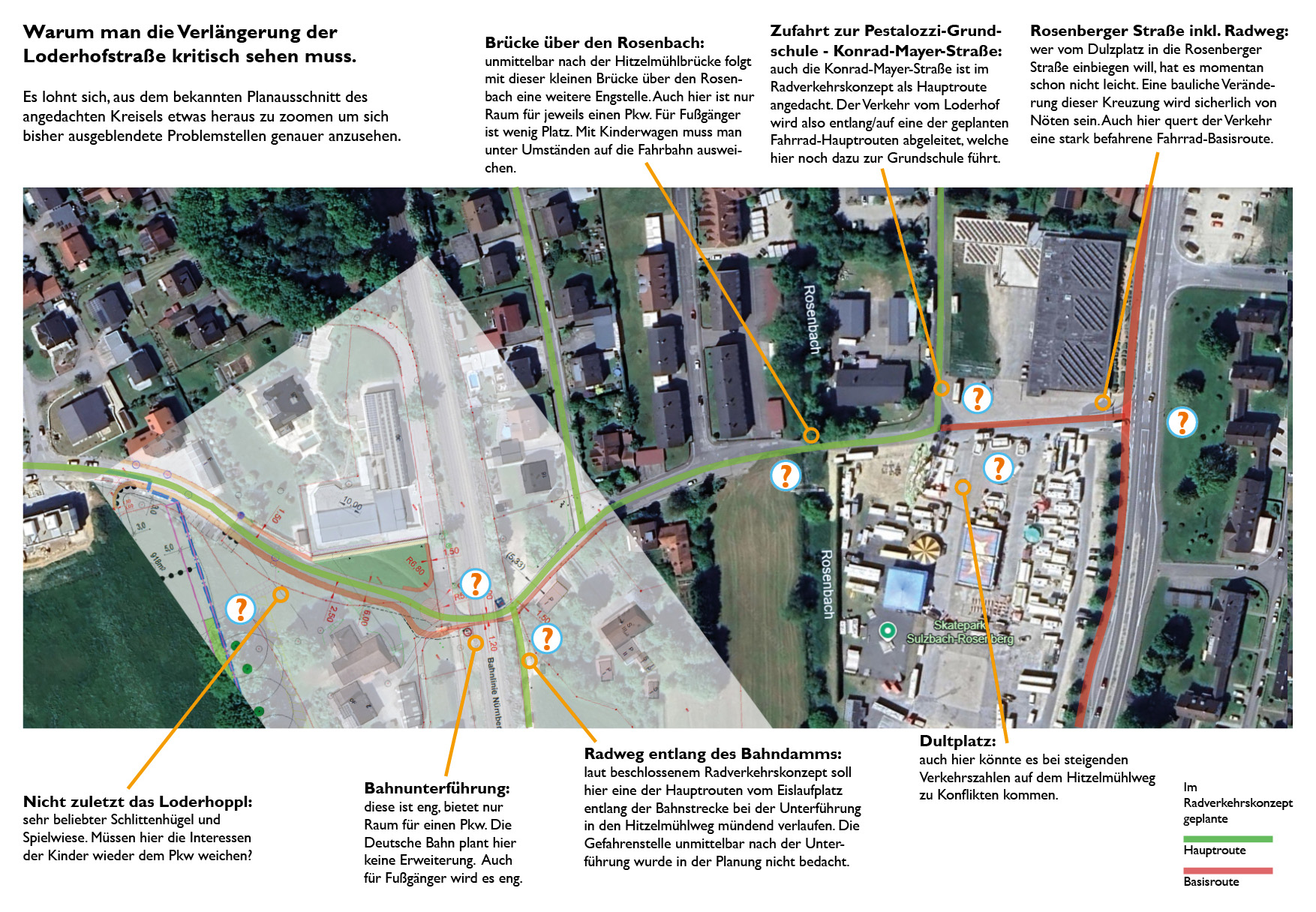 - die Einmündung des Hitzelmühlweges in die Rosenberger Straße ist schwierig bzgl.